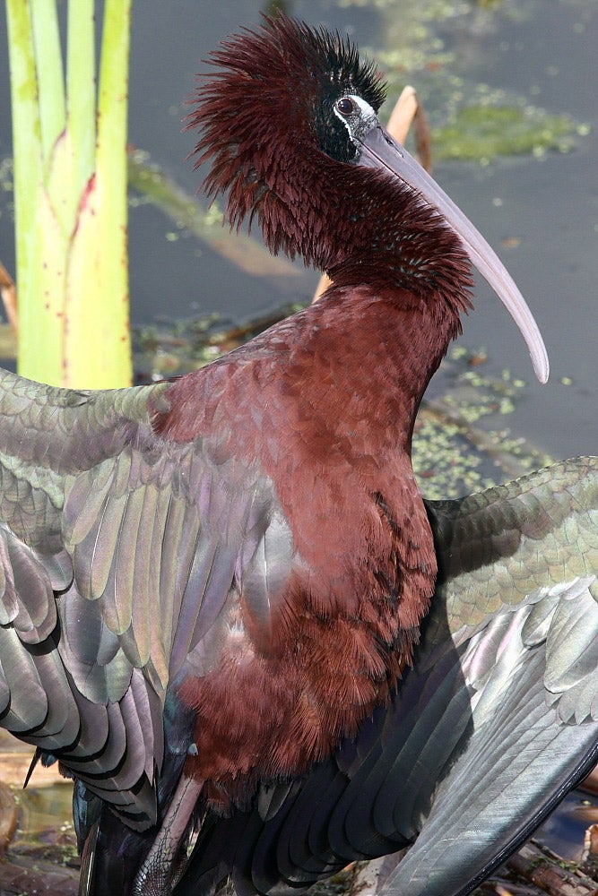 Las bandadas de ibis casta帽o caminan en las aguas poco profundas de los pantanos del este en busca de alimento con sus picos con forma de hoz. Expandida en el Viejo Mundo, la especie se encuentra en el Nuevo Mundo principalmente en las Indias Occidentales y a lo largo de la costa atl谩ntica, especialmente en Florida, donde su poblaci贸n era bastante escasa en fechas tan recientes como la d茅cada de 1930. Es posible que haya ingresado a la regi贸n en los 煤ltimos siglos, llevada por los vientos alisios desde 脕frica Occidental hasta el Caribe.