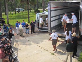 In the back of a FedEx truck, packed in Styrofoam containers that resemble beer coolers are one hundred and seven loggerhead sea turtle eggs. They were gathered at dawn from a nest in sugary white sand on a curl of Florida鈥檚 Gulf Coast called Cape San Blas. Beside the truck, a TV crew is interviewing Margaret-Mary and Ron, the smiley gray couple that will drive the eggs to Cape Canaveral, on Florida鈥檚 Atlantic Coast, where there is no oil鈥攖he pair hauled respirators after 9/11, vaccines in the H1N1 outbreak and a gorilla during a Great Lakes鈥 blizzard.