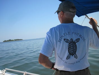 When the egg sendoff event ends I follow John and George and his wife Nancy back to their home for a tour of the picturesque bay their organization protects. We pass mailboxes shaped like fish then round Cape San Blas, where the eggs were gathered, and continue down a thin peninsula that separates the bay from the sea. The Crews鈥 home seems to epitomize a certain type of Florida. In the yard are a jet ski and a row boat, in the kitchen decorative fish plates hang above the stove. Nancy makes George a ham sandwich and hands him a 7 Up. John tells me about a cold snap last winter that stranded several hundred green sea turtles in the bay, stunned by the temperature drop and pushed by north winds they piled up at the south end. Over the course of two days George piled hundreds of turtles into his boat and delivered them to local wildlife officials who shipped them by truck to a marine animal rehabilitation center in Panama City. 鈥淵ou remember that George?鈥 asks John. 鈥淚t was cold as crap,鈥 says George, as he munches his sandwich.